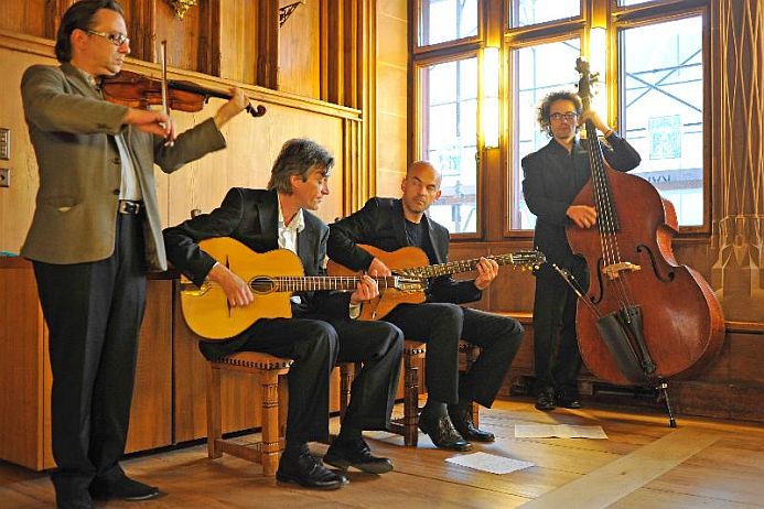 ."BELLEVILLE" hat sich seit geraumer Zeit zusammengefunden zwecks praktizieren eines Sounds mit stilistisch vielseitigem Repertoire in beinahe akustischer Art. (Jazz Manouche, Swing Tzigane, Jazz Standards, Latin, Samba, Bossa Nova, Musette, Südeurop. Folklore, Klezmer etc.) Die drei Musiker sind an zahlreichen Festivals, Clubs und Anlässen erfreulich aufgefallen. Oft spielt "Belleville" im Quartett mit dem Geiger Adam Taubitz .